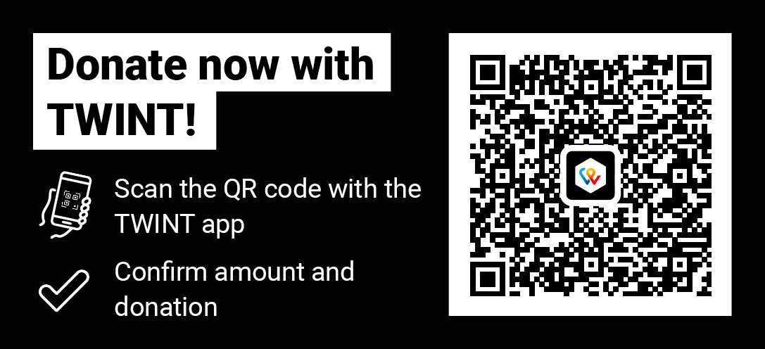 Vous pouvez faire un don, de manière anonyme ou non, via le lien twint ci-dessous ou par virement à: